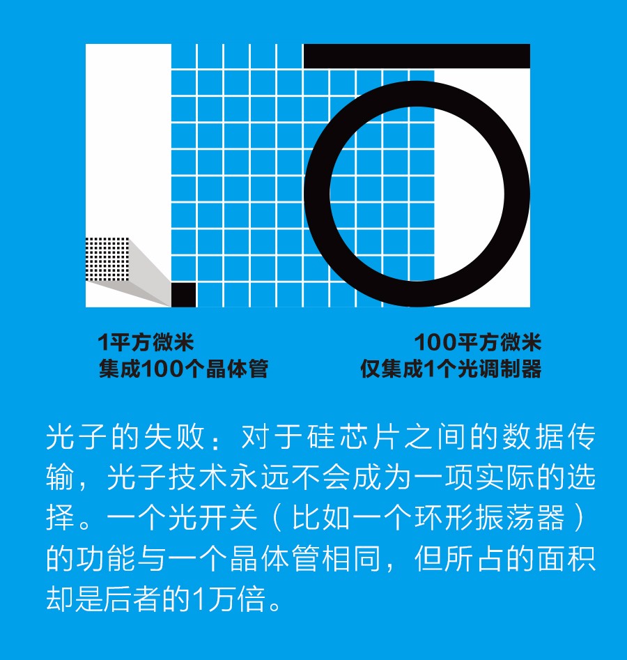 用光子元件替換芯片上的電子元件還存在其他障礙,比如,光子元件并不能夠提供芯片所需的某些關(guān)鍵功能(比如存儲)。結(jié)論是光子元件與基本計算機芯片功能不兼容。即使不是這樣,用光子代替發(fā)揮同等功能的電子也毫無意義。
